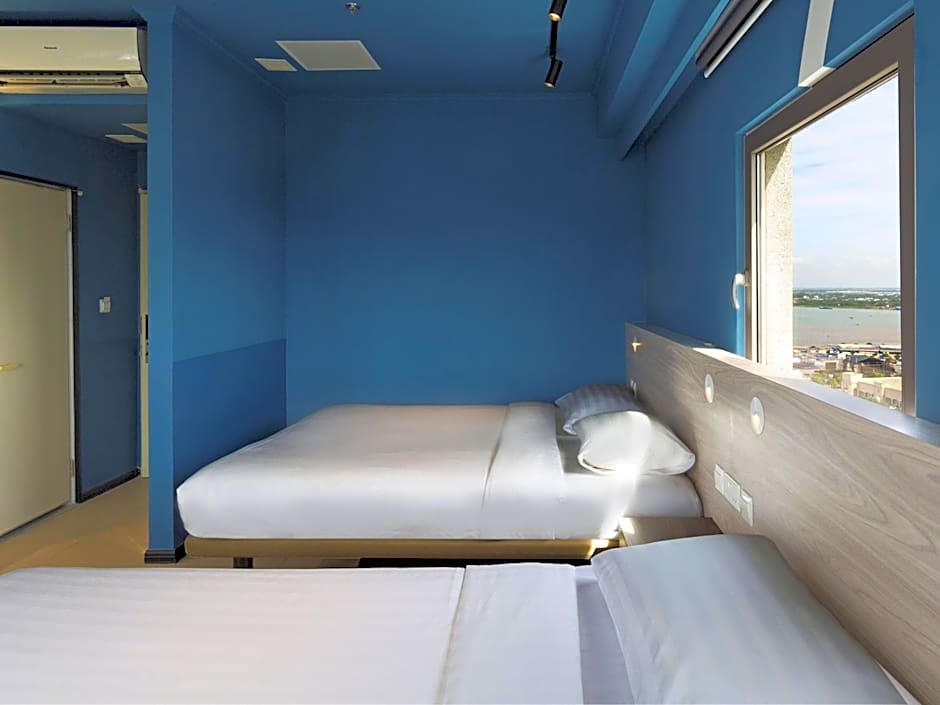 The quadruple room provides air conditioning, a dining area, as well as a private bathroom featuring a bath and a shower. The quadruple room features a safe deposit box, an electric kettle, a tiled floor, as well as a flat-screen TV. The unit offers 2 beds.